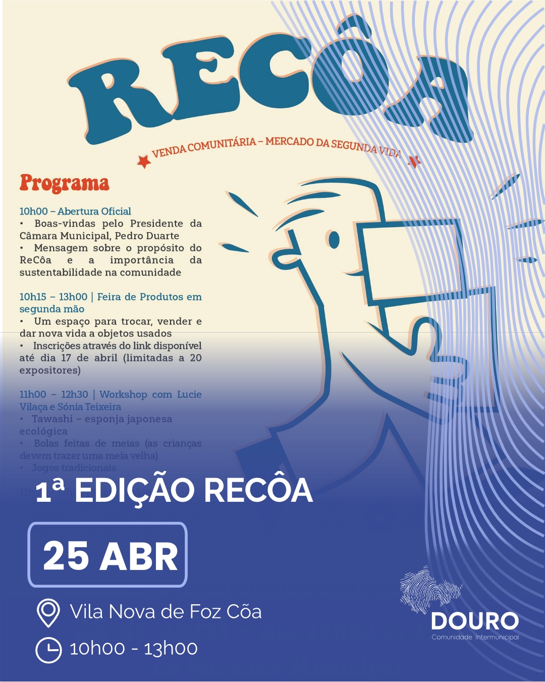 No próximo dia 25 de abril, o Mercado Municipal de Vila Nova de Foz Côa recebe mais uma edição do Recôa, uma iniciativa dedicada à sustentabilidade, à economia circular e à partilha de saberes.