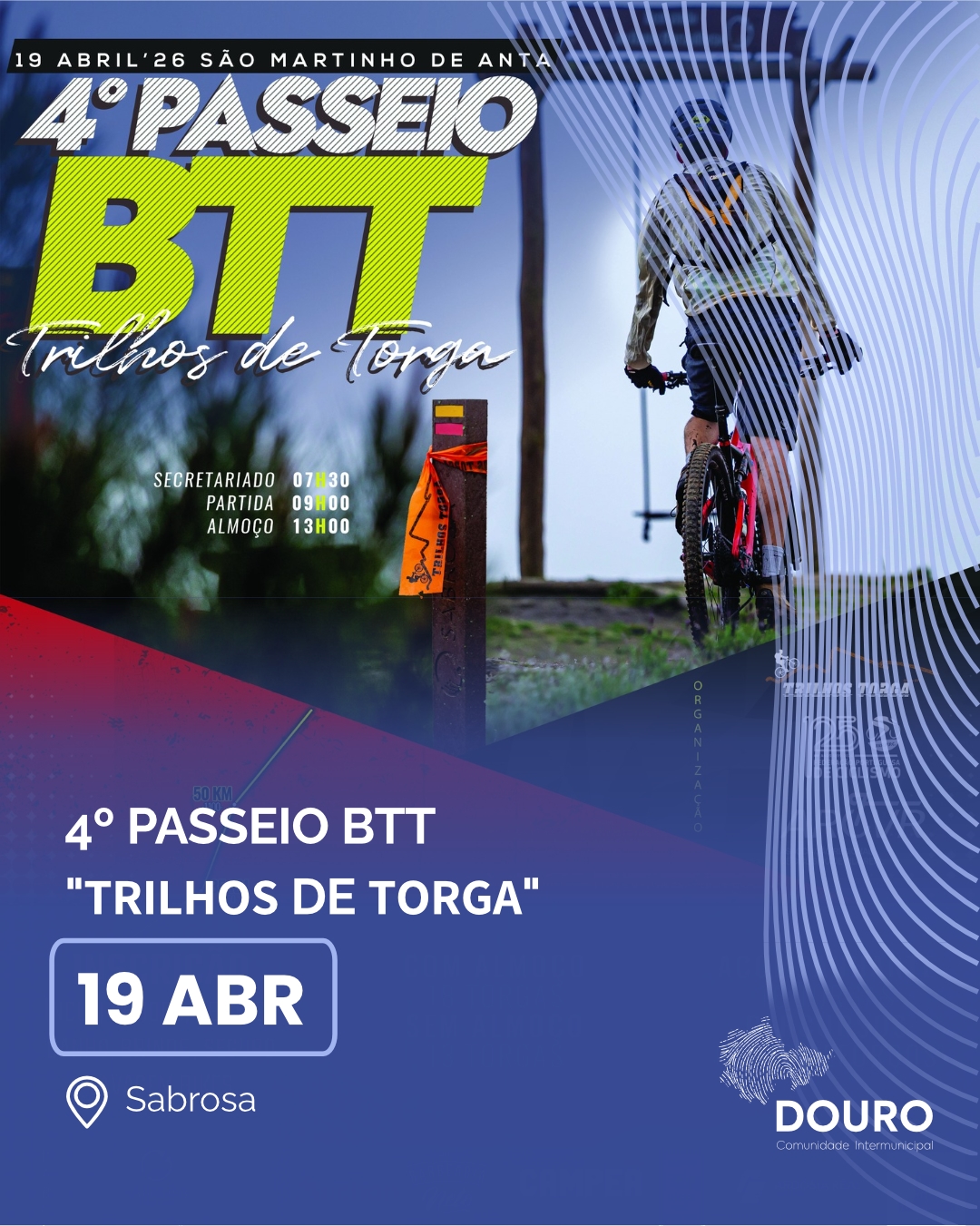 No dia 19 de abril, pelas 9h00, o Município de Sabrosa recebe o 4º passeio BTT “Trilhos Torga”, em São Martinho de Anta