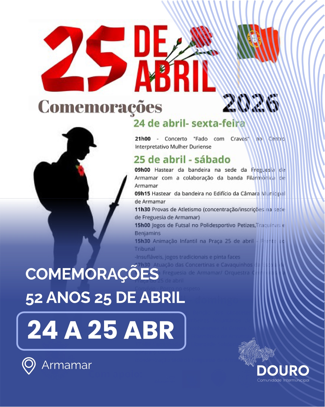 A vila de Armamar vai assinalar o 52.º aniversário do 25 de Abril, com um programa diversificado que se estende por três dias, combinando iniciativas culturais, desportivas e momentos de caráter solene.