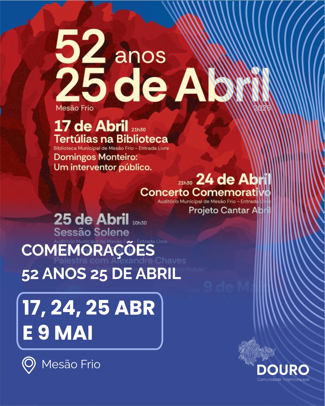 A Câmara Municipal de Mesão Frio vai festejar os 52 anos do 25 de Abril de 1974 com um conjunto de actividades culturais e solenes.